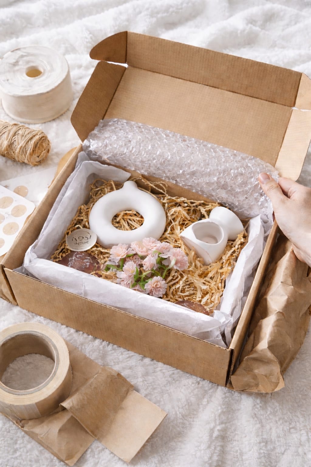 De producten worden beschermd en stijlvol ingepakt, zodat het uitpakken al een klein moment van rust en sfeer wordt.